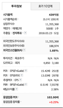 현재 기업은 임원을 포함한 직원 수가 총 23명인 회사이지만, 통신장비제조업에서 도매업(렌탈업)과 기업금융으로 업종전환 후, 연간 매출이 200억원이 넘고 시가총액은 400억이 넘는 대단한 생산력을 보여주는 기업이다. 단순 계산으로 1인당 연매출을 8억원을 발생시키고 있다. 시총으로 따지면, 1인당 몸값이 최소한 17억이라는 계산이 나온다